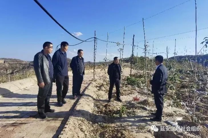 慰问结束后,宝塔区社会组织服务中心、延安市河南商会等一行人跟随柏林湾村书记前往该村山地旱作矮钻密植苹果示范基地,为商会企业介绍该村经济发展的主要产业,双方现场就“合作社”运转推动村经济发展达成初步合作意向,后续将进一步推进。