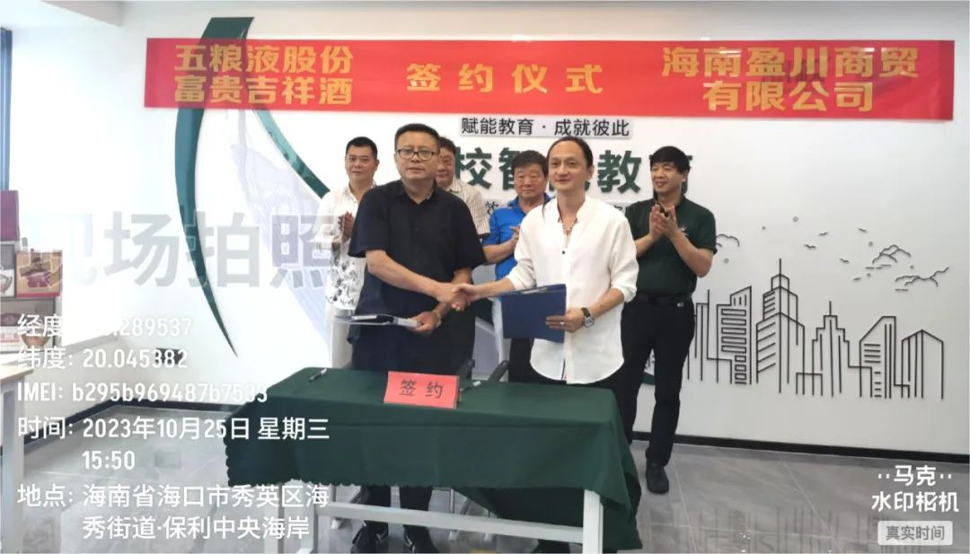 10月25日下午,五粮液集团富贵吉祥销售公司华东区总经理沈克辉与海南盈川商贸有限公司董事长、海南省安徽商会副会长叶复兴举行了隆重的签约仪式,海南省安徽商会创会会长刘笃寿、海南省徽文化研究会常务执行会长兼海南省“安徽两会”秘书长林月兵、海南省徽文化研究会副会长李友准以及海口市高尔夫球协会主席吴丕安、副主席蔡其斌等出席签约仪式。至此,五粮液集团旗下富贵吉祥系列借由海南盈川商贸有限公司正式进军海南市场。