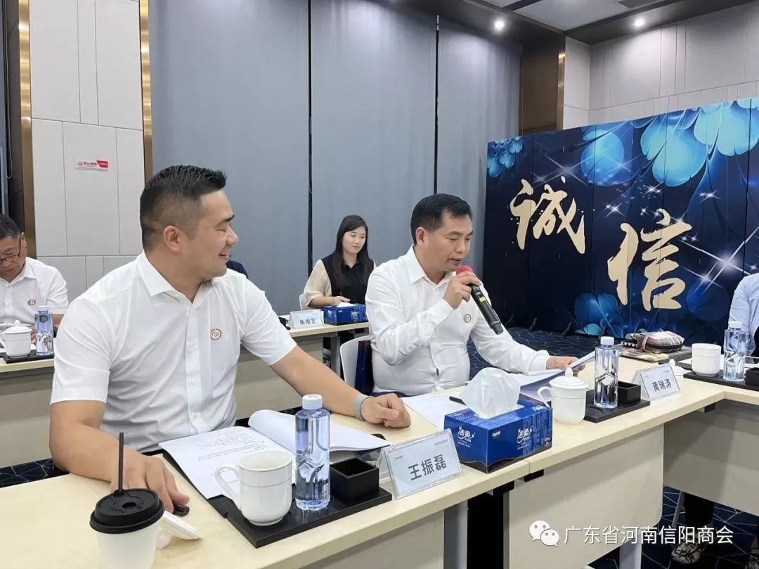 我会副会长兼支部书记王振磊进行党建工作汇报,首先跟大家分享在10月16日中共广东省河南信阳商会支部委员会正式批复成立,以及接下来有关党建工作的一系列安排,在党的带领下,完善好商会的党建工作和学习。