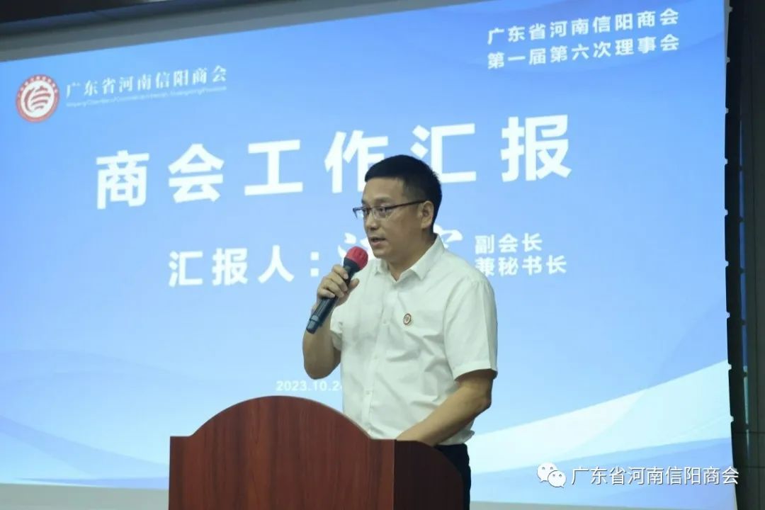 10月24日下午,广东省河南信阳商会第一届第六次理事会,在珠海长园集团会议室顺利召开,参加此次理事会有我会名誉会长吴启权、会长程一、监事长张勇、执行会长黄瑞涛、副会长兼党支部书记王振磊等30余名商会成员参会,副会长兼秘书长汪宏主持会议。