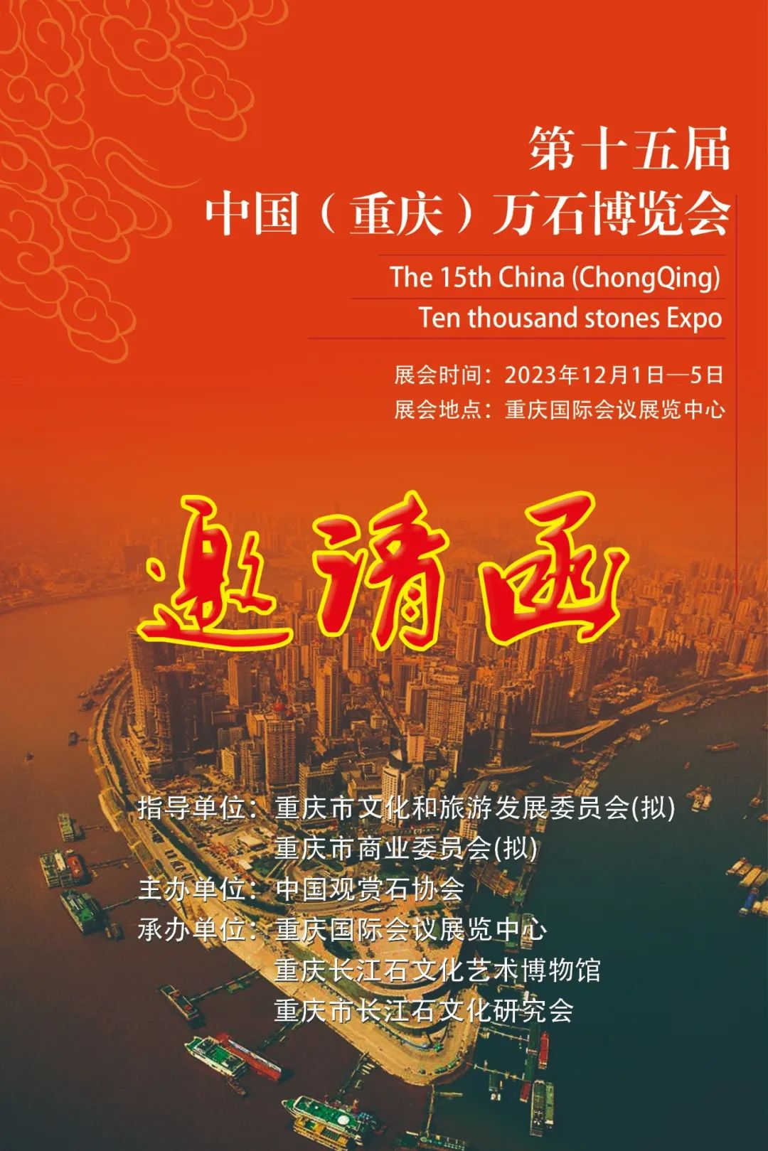 为进一步弘扬中华优秀赏石文化,传承“赏石艺术”这一国家级非物质文化遗产项目,丰富赏石文化的内涵,共同繁荣观赏石市场,由中国观赏石协会主办,重庆市长江石文化研究会、重庆长江石文化艺术博物馆、重庆国际会议展览中心承办的第十五届中国(重庆)万石博览会将于2023年12月1日至12月5日在重庆国际会议展览中心举办。