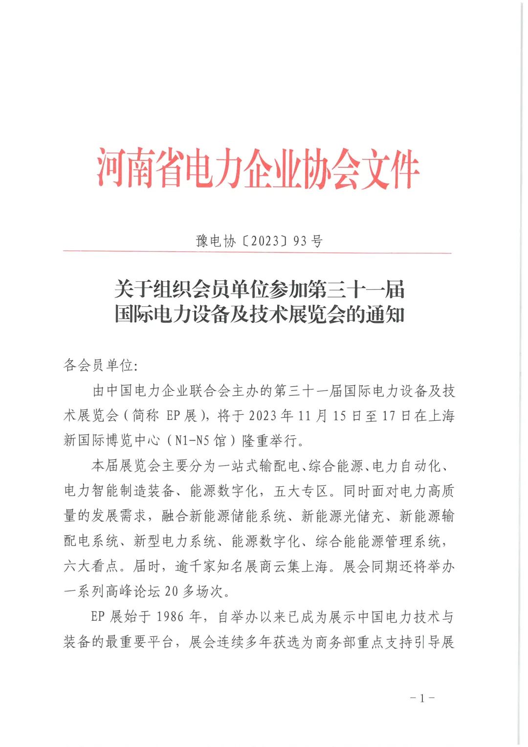 EP展始于 1986 年,作为中电联重点品牌展会已获得国际UFI认证,并连续多年入选中国商务部引导支持展会。EP展见证了我国电力行业技术与装备由弱到强、由技术引进到技术输出的巨大变化,已经成为展示中国电力技术与装备的重要平台,是中国最具影响力的电力专业展会之一。今年的展会将汇聚更多技术创新和绿色发展的成果,为实现电力工业高质量发展注入新的动力。