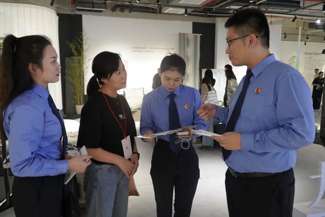 “我们公司设计的花型被他人盗用,我该如何维权?”“如果我遇到恶意‘维权’该怎么办?”检察官为设计工作者和商家一一解答了知识产权相关法律问题,重点围绕什么是花型版权恶意维权、著作权登记证书性质与颁发流程、维权途径等开展普法宣传,并向参展人员赠送了《检察机关重拳打击纺织花型恶意维权》宣传册。