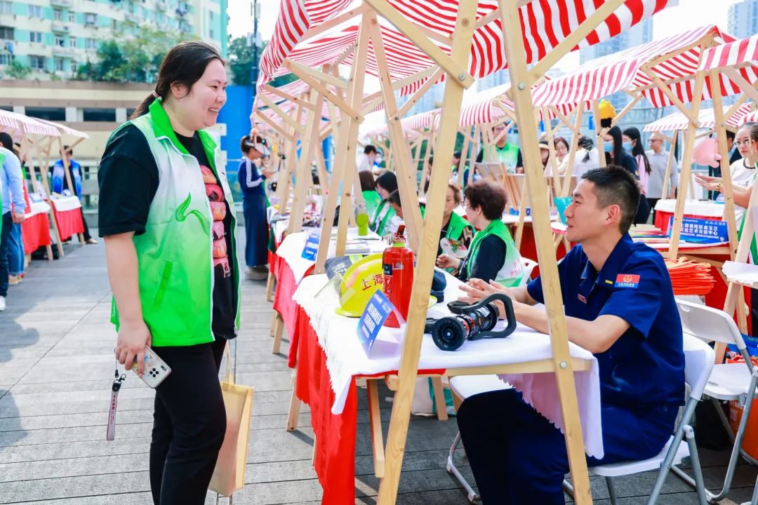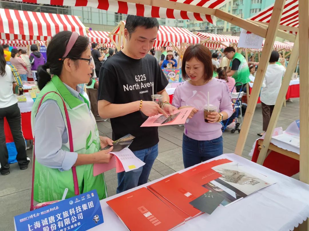 10月25日下午,“迎进口博览会,展志愿新风采”城市文明志愿服务公益市集和“半马苏河· 七彩长寿”主题摄影展览火热进行。此次活动由上海市志愿服务公益基金会指导,长寿路街道新时代文明实践分中心、街道团工委承办,现场以“5+1”市集形式开展,包含进博宣传、非遗展示、便民服务、政策宣传、公益义卖5大区域和1场主题摄影展览,诚唐集团作为第二十届上海市普陀区文明单位受邀参加,在现场进行安全教育宣传介绍。辖区30家单位、60余名志愿者参与服务,吸引周边200余名居民前来参与打卡。