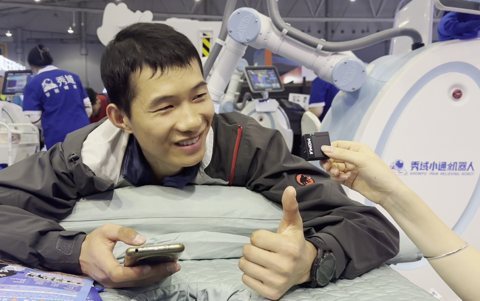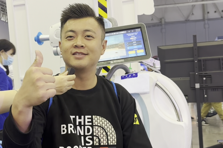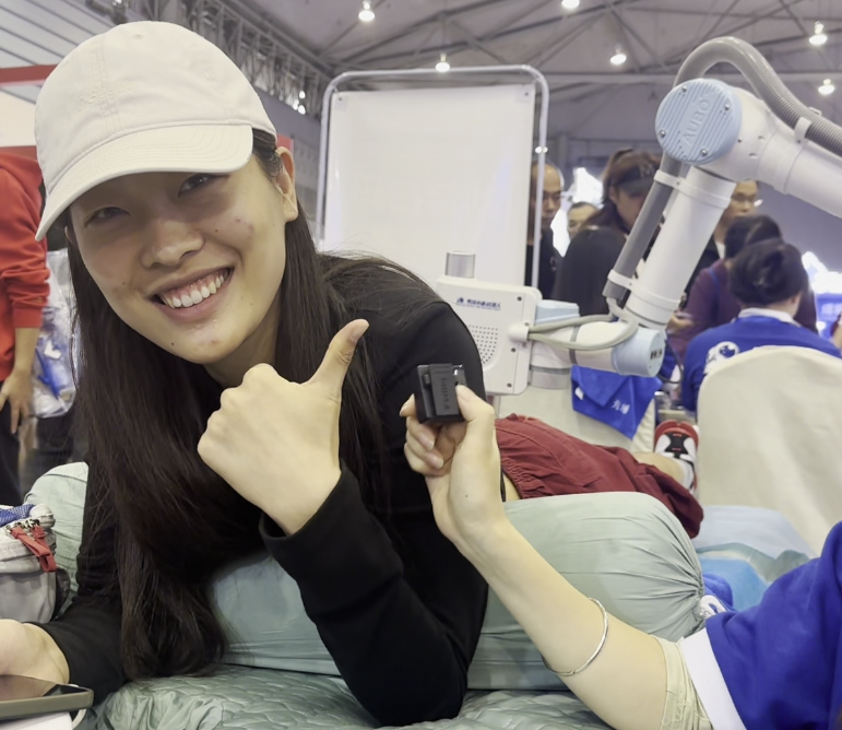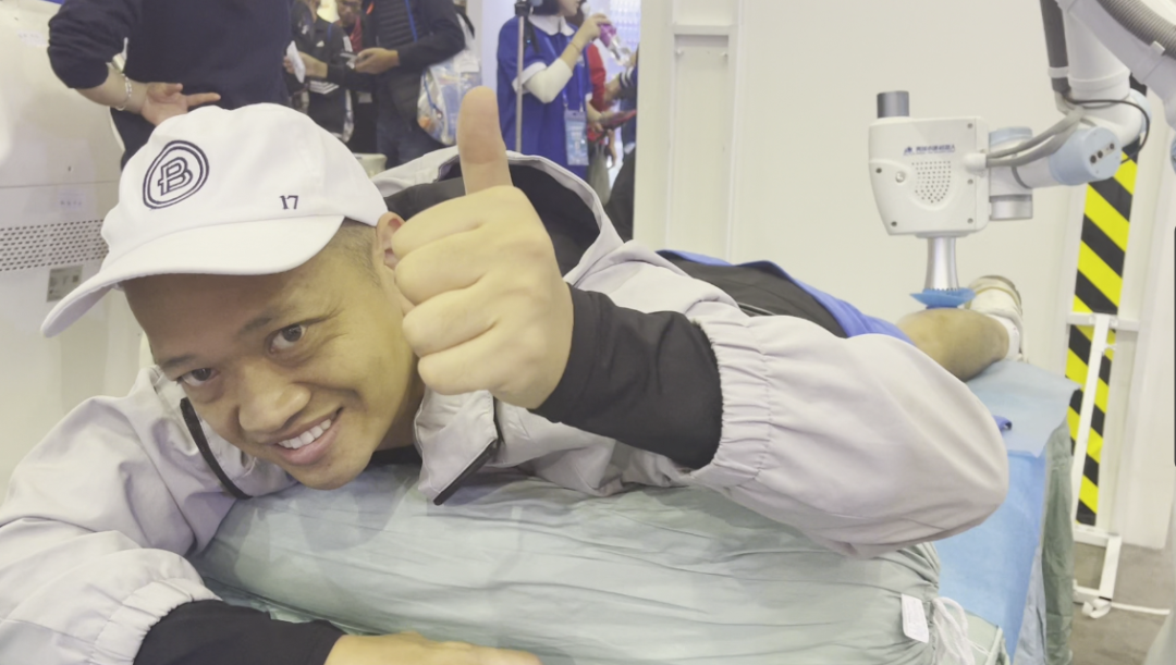 “力度很精准,感觉能够打到经脉上,我前两天训练的时候小腿有一点点拉伤,刚好能按到我不舒服的地方。机器人按摩比人工按摩更快、效果更好!”