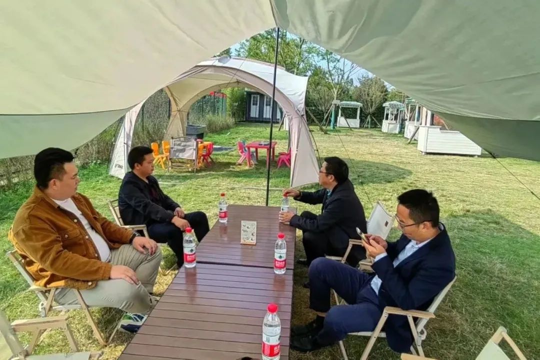 第一站,参观了监事长叶青企业重点项目——岷江桂雨特色小镇。在书院负责人的带领下,参观了以川西林盘文化为主题中式院落--桂雨心斋,该项目再现川西农耕文明,配套农耕公园、空中茶室、户外瑜伽平台、水景等;接着参观了荣获2023年德国柏林公共建筑设计银奖的岷江美术馆。该馆从2023年12月19日投运,已成功举办《望见龙门山 艺术乡城 创变未来》、《春风十里 蜀韵千年》等川内书画名家作品艺术展;然后参观了以“古蜀文化、农耕文化”为核心、打造“蜀人识蜀”主题营地及研学基地。