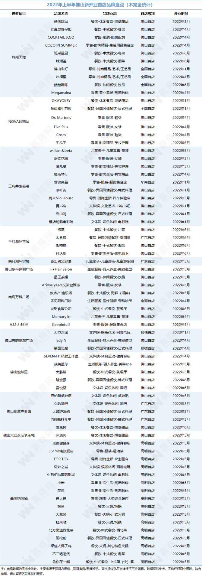 附:2022年上半年佛山新开业首店品牌清单