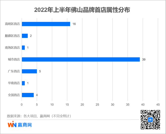 与一线城市广州为邻的佛山,今年上半年共迎来 69 家 首店品牌 (数据来源:赢商网重点监测佛山17家代表性购物中心) 。