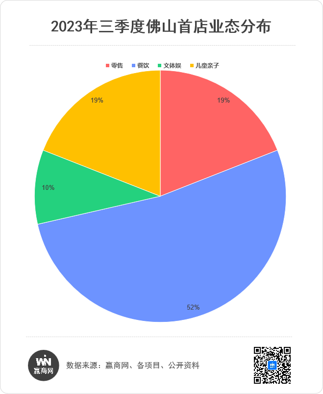 据赢商网不完全统计,佛山三季度共吸纳21家首店,其中餐饮品牌占据大头,共11家,占比达52%,比零售、文体娱、儿童亲子业态总和还多。