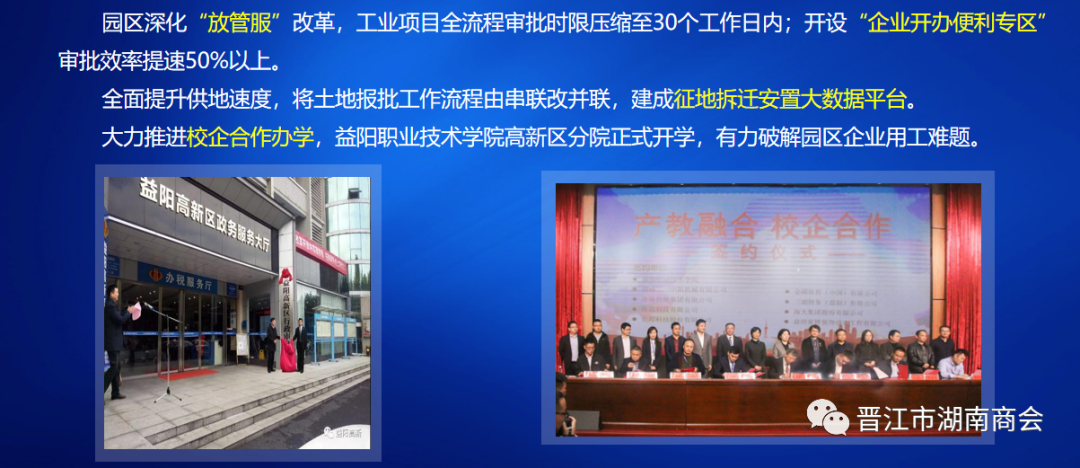 益阳高新区经济合作局局长熊宇宏为参会人员介绍益阳高新技术产业开发区的基本情况——益阳国家高新技术产业开发区(益阳高新区)创建于1994年,2011年6月经国务院批准升级为国家级高新技术产业开发区,位于益阳市中心城区,是益阳“东接东融”对接长沙的“桥头堡”。园区分朝阳产业园、东部产业园,辖三个镇(街道办事处),辖管总面积135.19平方公里,规划建设面积67.07平方公里,人口约18万人,现有各类工业企业300余家,其中规模工业企业175家,高新技术企业68家。
