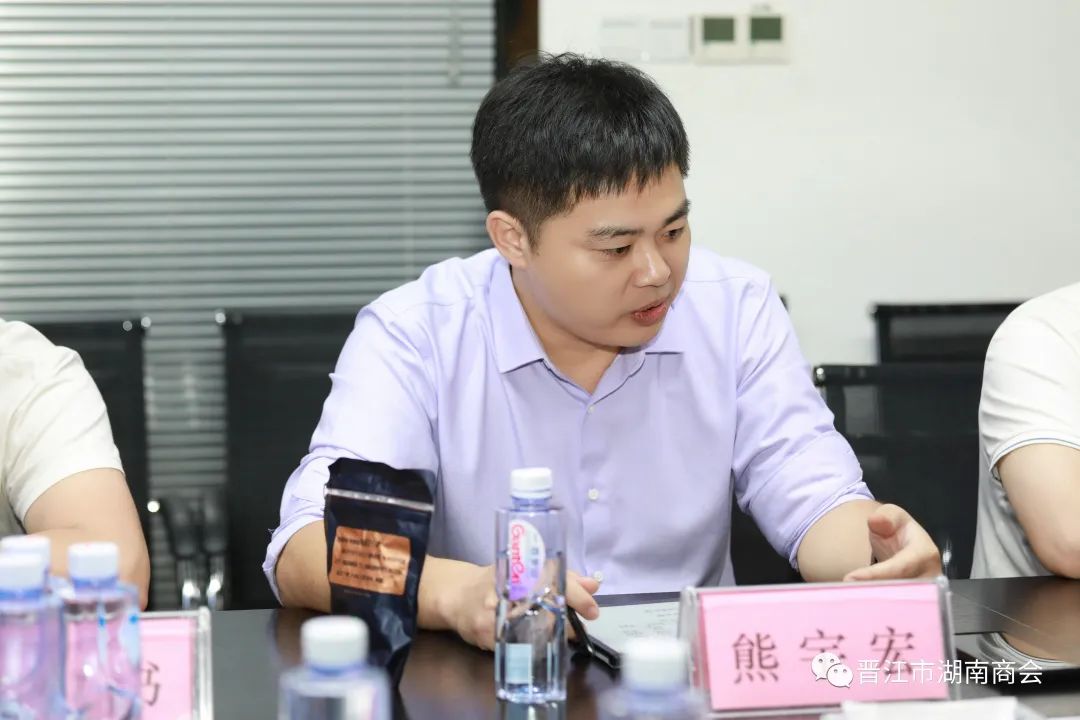 晋江市湖南商会执行会长洪珣对益阳市贸促会党组书记田建强、益阳高新区经济合作局局长熊宇宏领导一行的到来表示欢迎,并期待与会商会家人及湘贤能在此次座谈会上畅所欲言、有所收获。