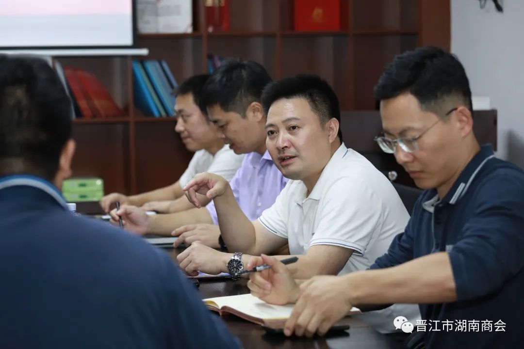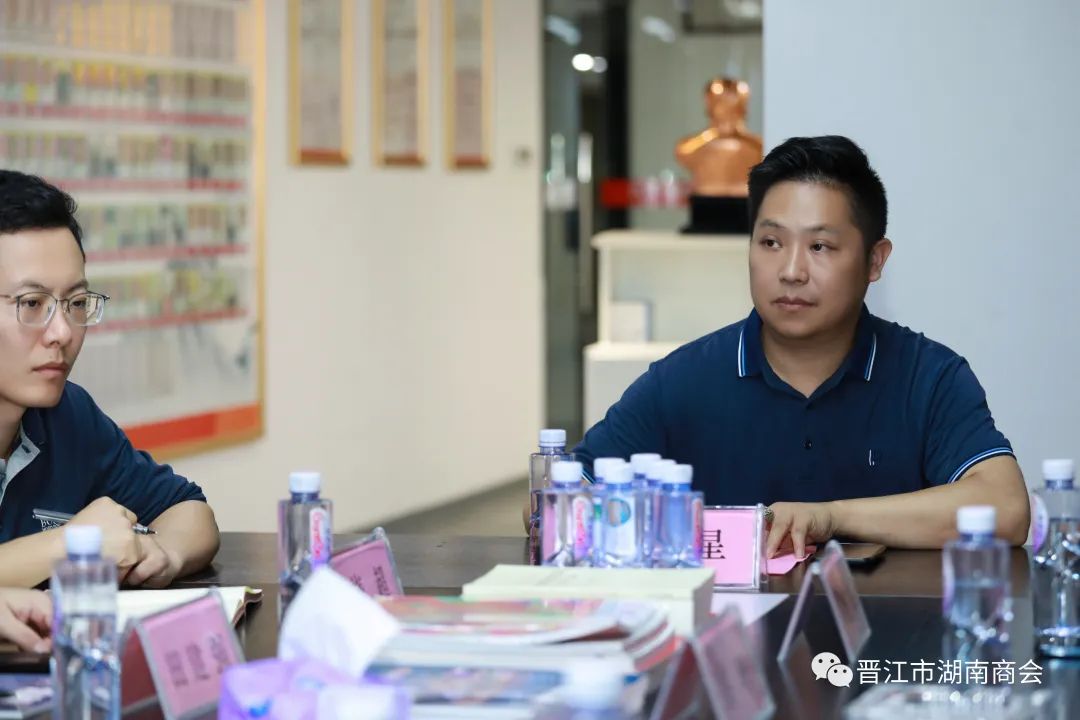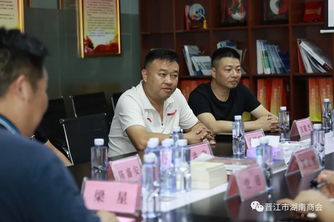 晋江市湖南商会执行会长洪珣;名誉会长兼秘书长姚固军;党支部书记荣豹;常务副会长蒋孟良(拟任);执行秘书长梁星随行接待。优秀湘贤陈盛安、贺超杰与会。