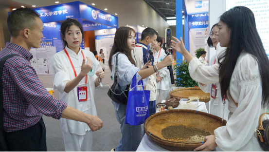 学生现场展示了传统中药水泛丸制作工艺、文创产品中药香囊制作、中医康复理疗体验以及建昌帮精品中药饮片标本,展馆现场参观体验的嘉宾络绎不绝,吸引了众多嘉宾到场参观体验和交流,还吸引了众多自媒体主播体验和介绍宣传学校。