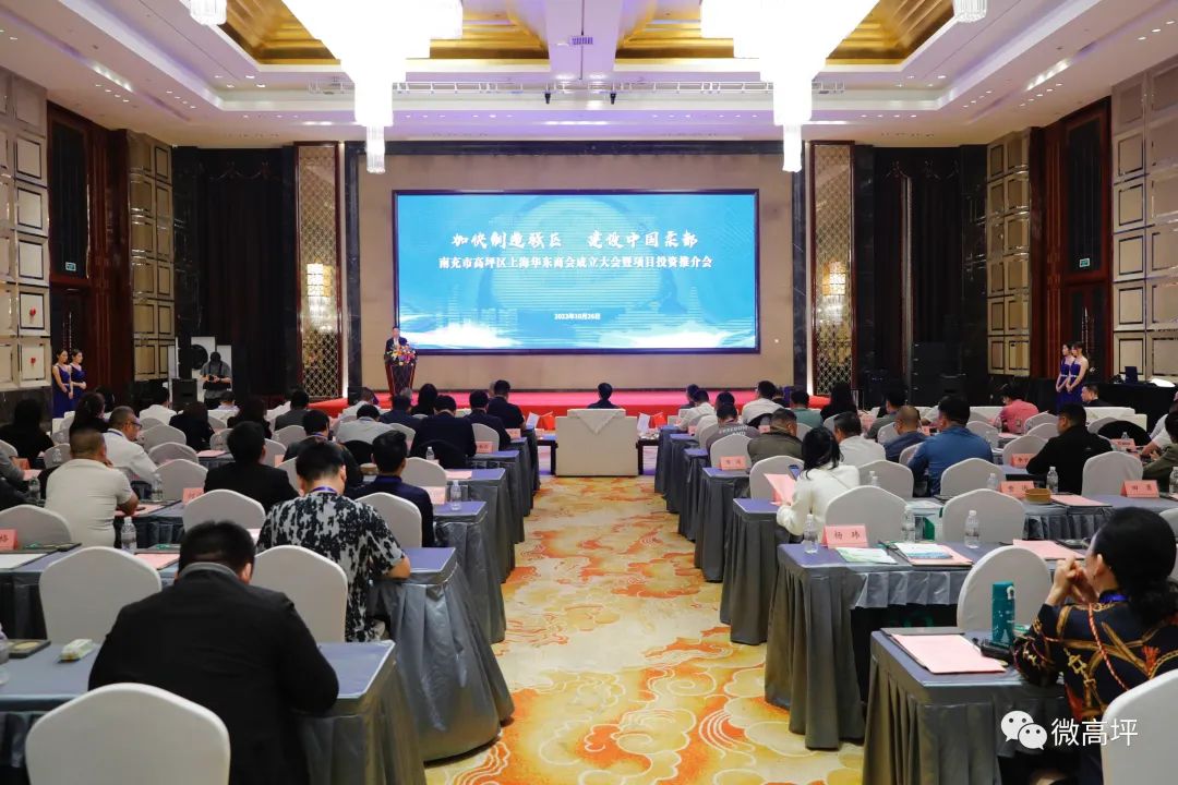 10月26日下午,南充市高坪区上海华东商会成立大会暨项目投资推介会在上海举行。