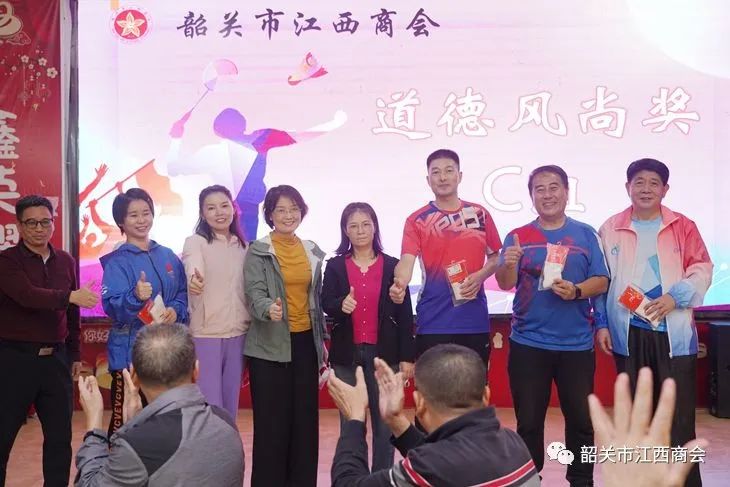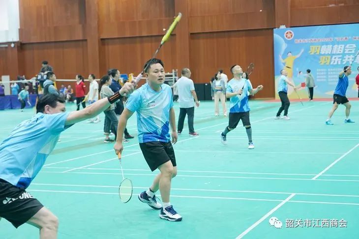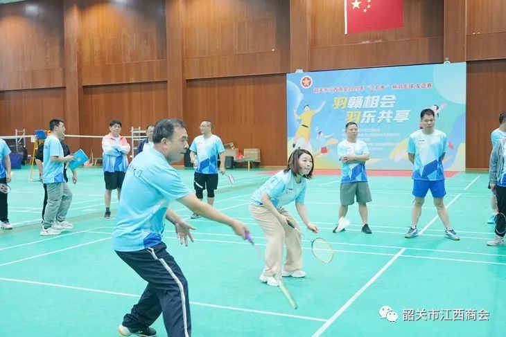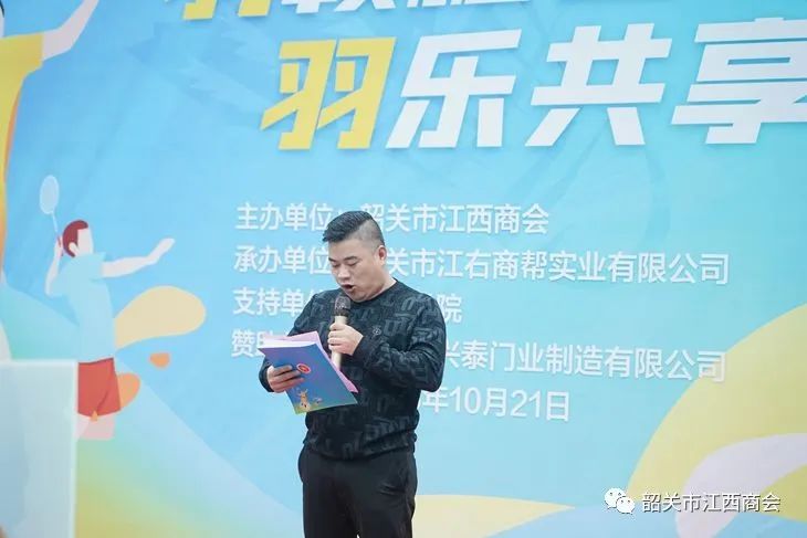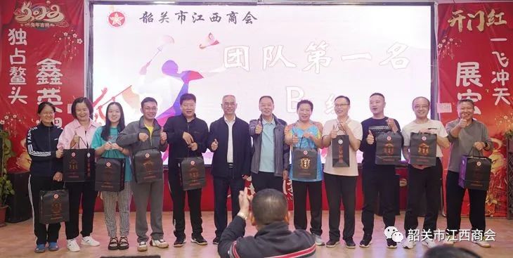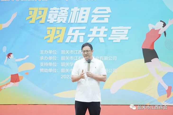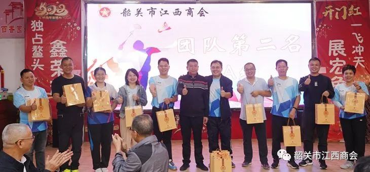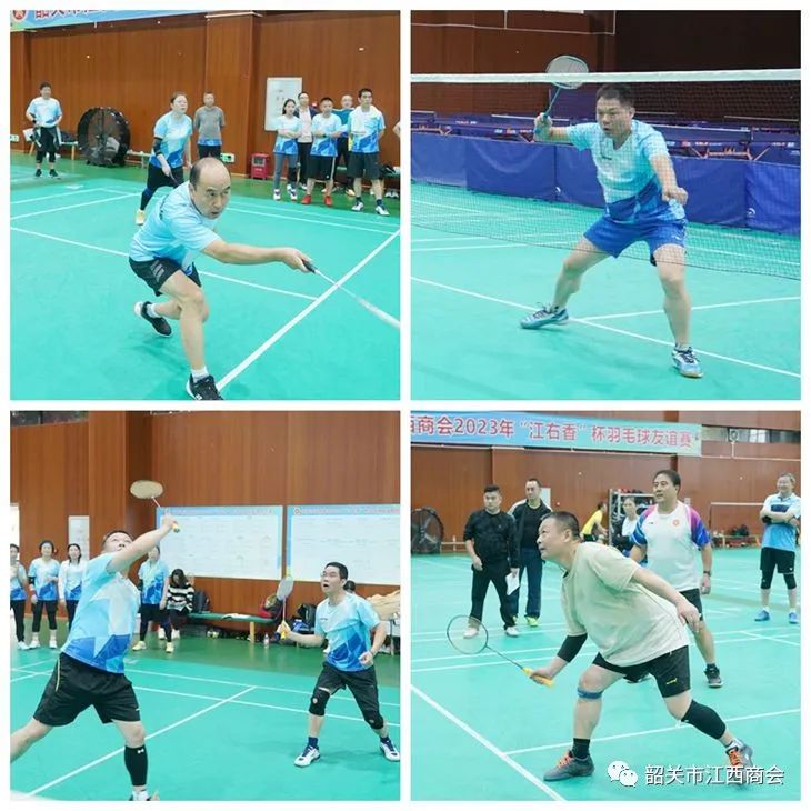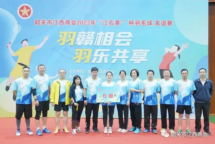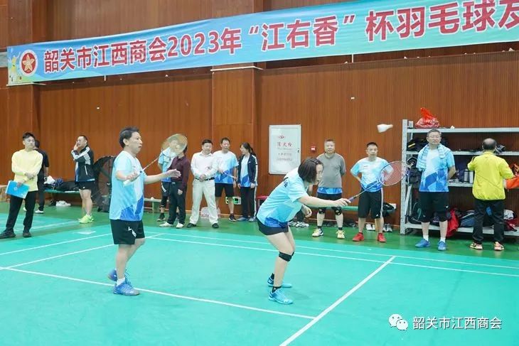 韶关市江西商会第三届“江右香”杯羽毛球友谊赛圆满举办 2023年10月21日,韶关市江西商会第三届“江右香”杯羽毛球友谊赛在韶关学院羽毛球馆隆重举办,旨在进一步丰富商会文化建设,活跃商会文化氛围,增强商会凝聚力,促进会员与乡贤之间的交流和互动。秋高气爽,在这丰收喜庆的季节,在韶赣籍乡贤和商会会员52名羽毛球爱好者,共同上演了一场精彩赛事。韶关市江西商会支部书记、会长罗贤林,执行会长衷诚宝、黄龙生,常务副会长甘长凌、周小平,副会长管向斌、彭家发、周招荣、刘光明、郭芳敏等亲临比赛现场,为参赛选手们加油、鼓劲。 比赛在雄壮的国歌声中拉开帷幕,商会执行会长黄龙生代表商会致开幕辞。黄龙生表示,在以罗贤林会长为核心的商会领导班子的大力支持下,在众多乡贤和会员的共同参与下,以及相关人员的精心筹备下。以“羽赣相会,羽乐共享”为主题的羽毛球友谊赛顺利开幕,希望大家赛出商会“团结友爱、互助共进”的良好精神风貌,赛出风采。结果重要,过程更重要,友谊最重要。 随后,举行隆重的裁判和选手宣誓仪式,并由总裁判宣读比赛规则以及相关工作人员的职责分工。 赛场上,选手们纷纷拿出自己的看家本领,比分交替上升,把气氛烘托得紧张而热烈,观众们在旁边不断呐喊助威,欢声笑语不断,充分展现了江西人积极向上永不服输的体育精神。 赛事持续了一整天,部分观赛会员主动担当志愿者,为比赛选手送水、递球... 在比赛现场全程助力,体现了“赣商一家亲”的良好风尚!大家以球会友,重在锻炼、重在友谊,传递出满满的正能量。 比赛经过一天紧张激烈的角逐,B组夺得团体第一名,A组夺得团体第二名。18:30,在大学路百香园农庄进行了颁奖仪式和晚宴。 罗贤林在颁奖晚宴上发表热情洋溢的讲话:本次“江右香”杯羽毛球友谊赛在大家的共同努力和全力参与下,得以圆满成功举办,感谢大家的热情支持和积极参与。
