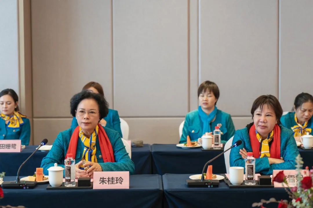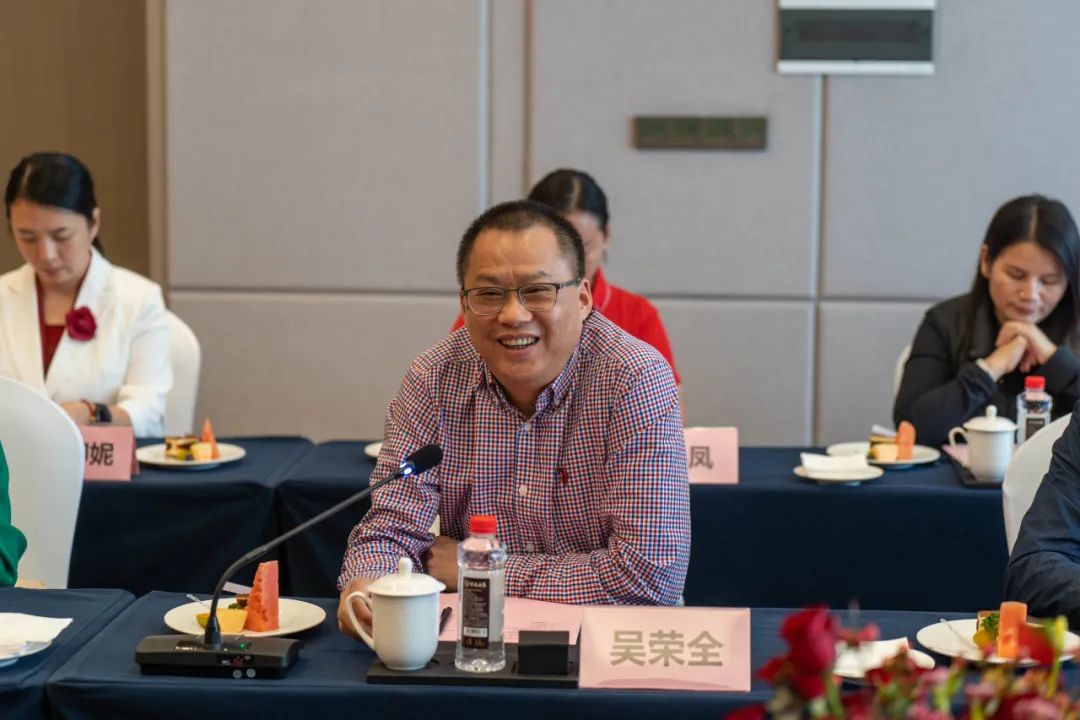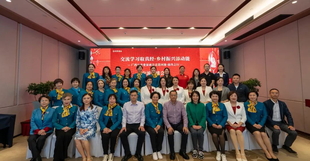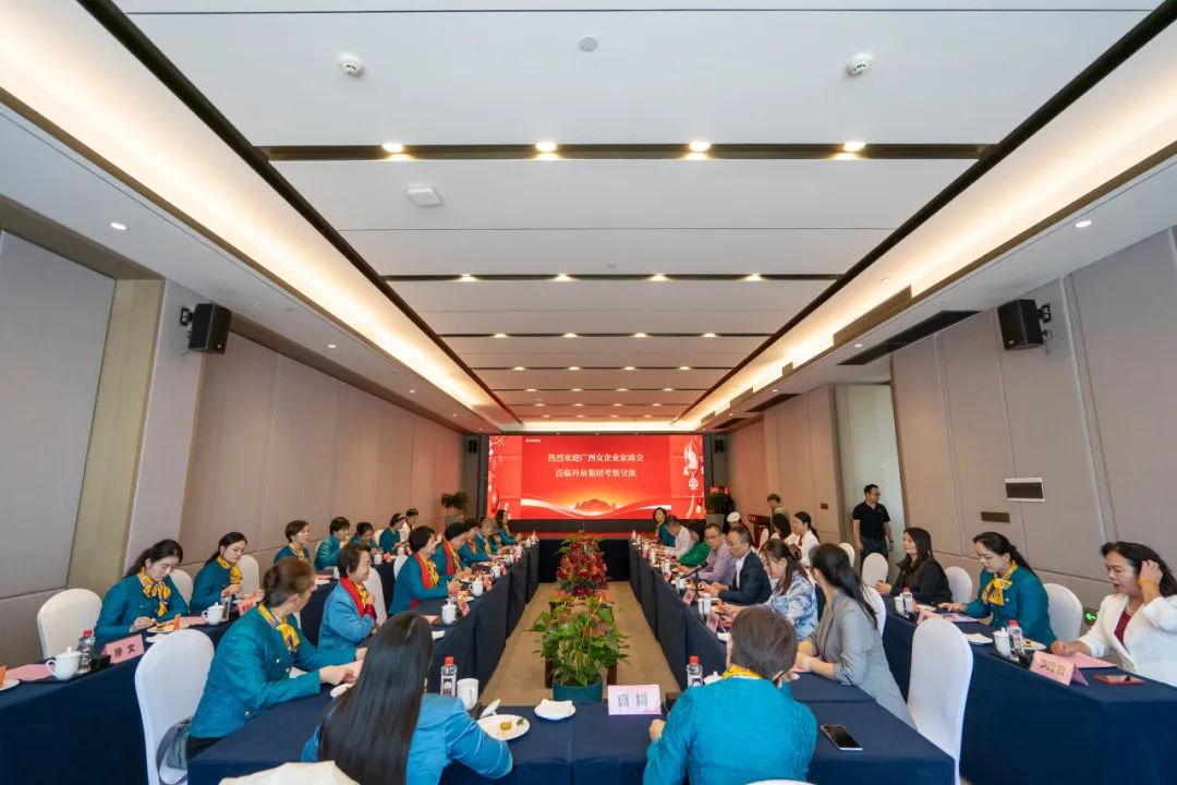 河池市委统战部副部长、台办主任(兼)、市工商联党组书记潘冬梅,市投资促进局副局长兰学绘,南丹县投资促进局办公室主任、三级主任科员蓝柳娟,广西丹泉集团党委书记、董事长吴荣全,广西丹泉酒业党委书记莫伟明,广西丹泉集团副总经理吴林吉等领导与广西女企业家商会一行企业家座谈交流。