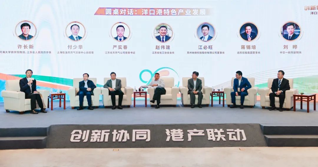 在新的历史条件下,如何把洋口港的特色产业打造好,成为峰会探讨的重要课题,在江苏省政府参事、河海大学商学院教授许长新的主持下,一场主题为“洋口港特色产业发展”的圆桌对话展开,上海石油天然气交易中心总经理付少华、江苏省化工协会会长赵伟建、远东控股集团创始人、董事局主席蒋锡培、苏州纳微科技股份有限公司董事长江必旺、江苏省天然气有限公司党委书记严实春、中交一航院副院长刘晔分别就LNG产业、新材料产业和装备制造产业建言献策。