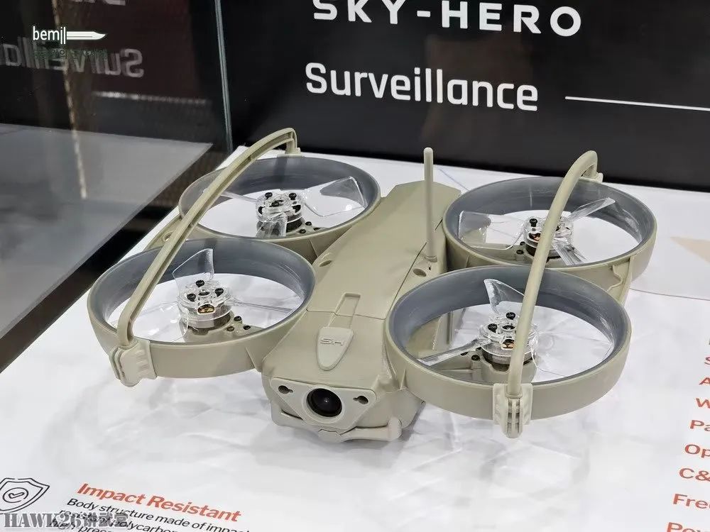 四旋翼无人机,旋翼直径较小,采用三个桨叶,旋翼外侧有护圈,用于防止磕碰。