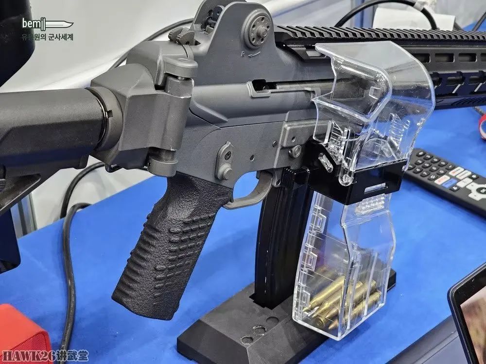 本文将发布韩国BEMIL现场图片报道,展示的都是韩国厂商的产品,包括坦克、装甲车辆、战斗机、运输机、无人机和运载火箭等。但是,原文并没有文字说明,因此,本人将根据图片内容进行配文。由于本人水平有限,部分内容可能会有错误,欢迎指正。这是AUGERD公司展出的弹壳回收器,非常特殊的是它采用透明材质,让射手对内部情况一目了然。