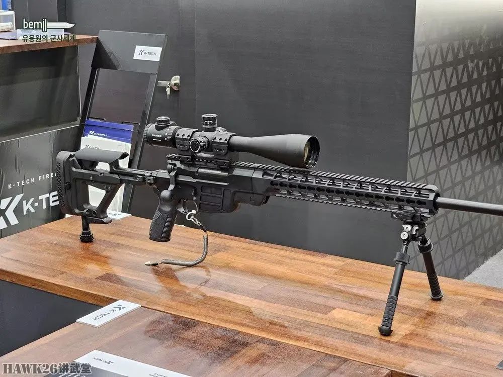 折叠枪托可以调节长度、贴腮板高度,枪托底部有独脚架,可以减少长时间据枪瞄准的体能消耗。枪口可安装消音器。机匣和护木上方有全长皮卡汀尼导轨,护木下方有皮卡汀尼导轨,两侧则是Key-mod通用接口。从照片上看,K-TECH公司还展出了CSR 50狙击步枪,口径12.7×99mm。