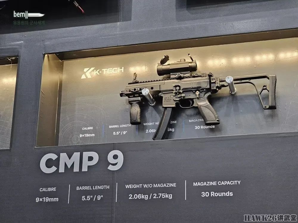 K-TECH公司CMP 9冲锋枪,9×19mm口径,看起来与西格绍尔公司的MPX非常相似。为了提高操作性能,许多新枪都采用AR构型,控制部分(保险、弹匣卡榫、空仓挂机解脱杆)的位置与AR-15步枪相同。加之这类冲锋枪都采用自由枪机自动方式,就造成新型冲锋枪外形都非常接近。