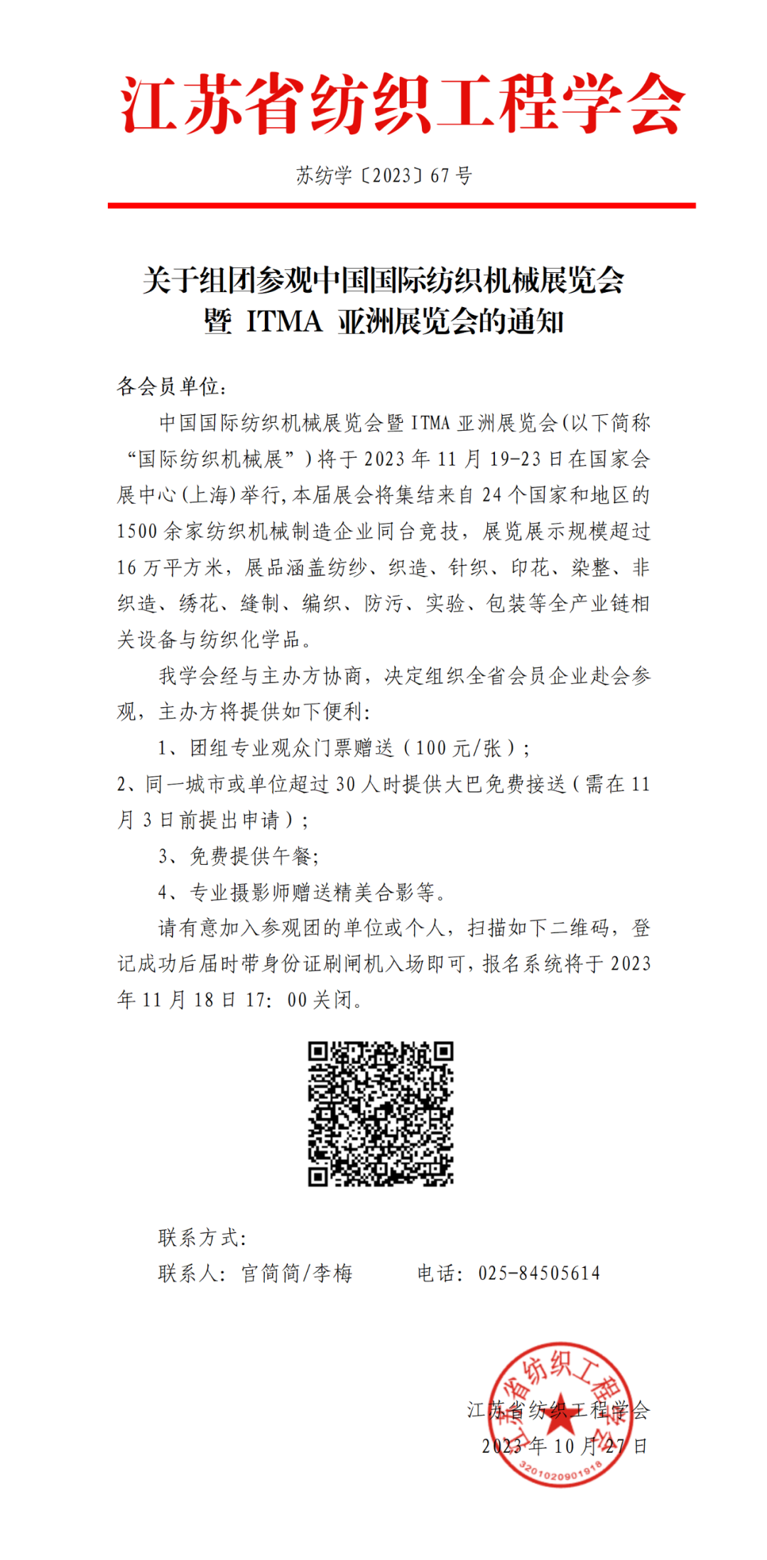 通知 | 关于组团参观中国国际纺织机械展览会暨 ITMA 亚洲展览会的通知