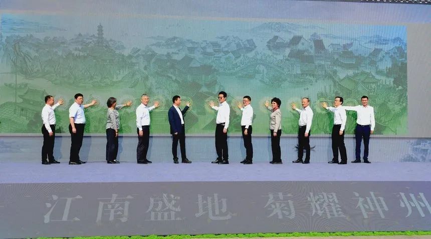 来自全国各地近50家参展城市的代表和菊花大师、园林专家300余人在景区九龙壁广场出席开幕式并见证本届中国菊花展览会的盛大开幕。