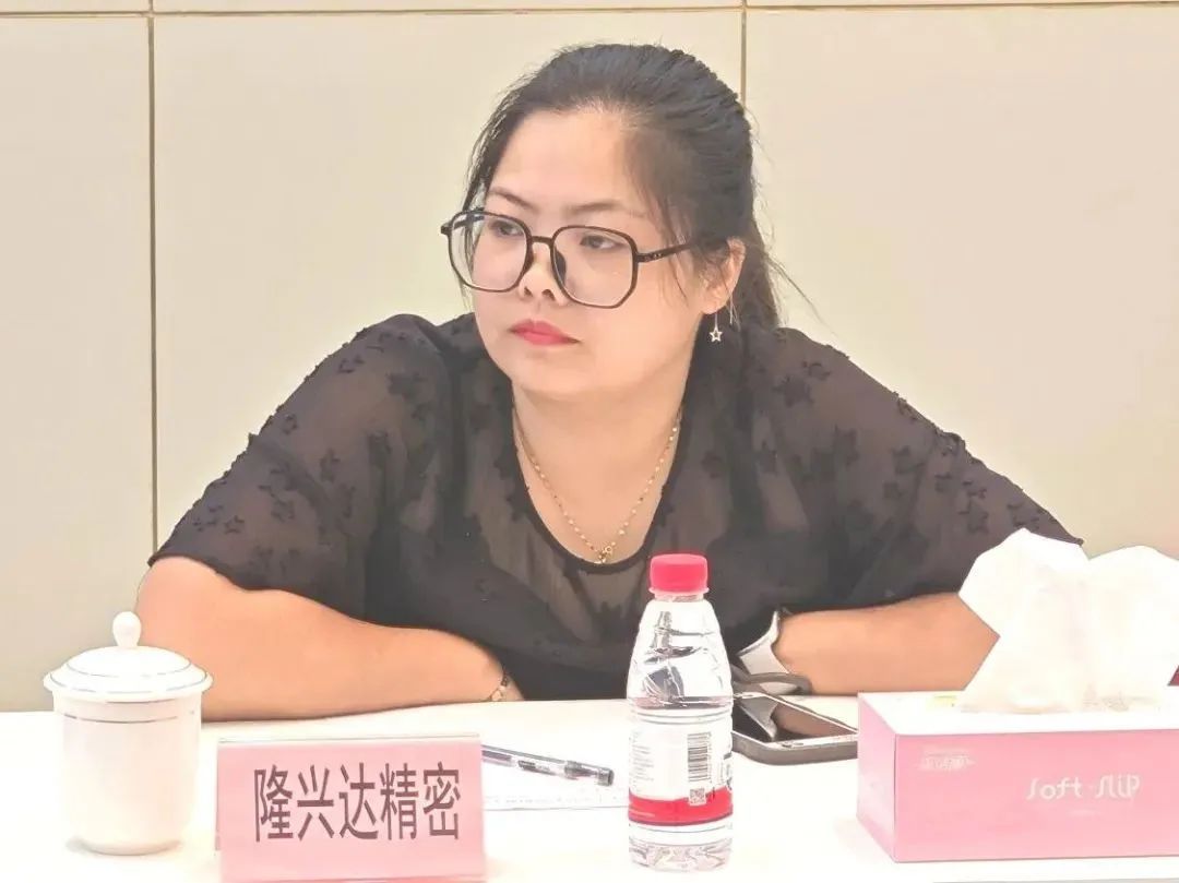宝安区人民检察院知识产权组一级检察官林玉屏,书记员刘格菲,石岩街道工商联(商会)常务副主席(常务副会长)罗欣,秘书长廖镜辉,副秘书长刘芳丽,以及双诚服装、盛妆百货、金三维模具、深发包装、隆兴达精密等企业代表一同参加交流座谈。