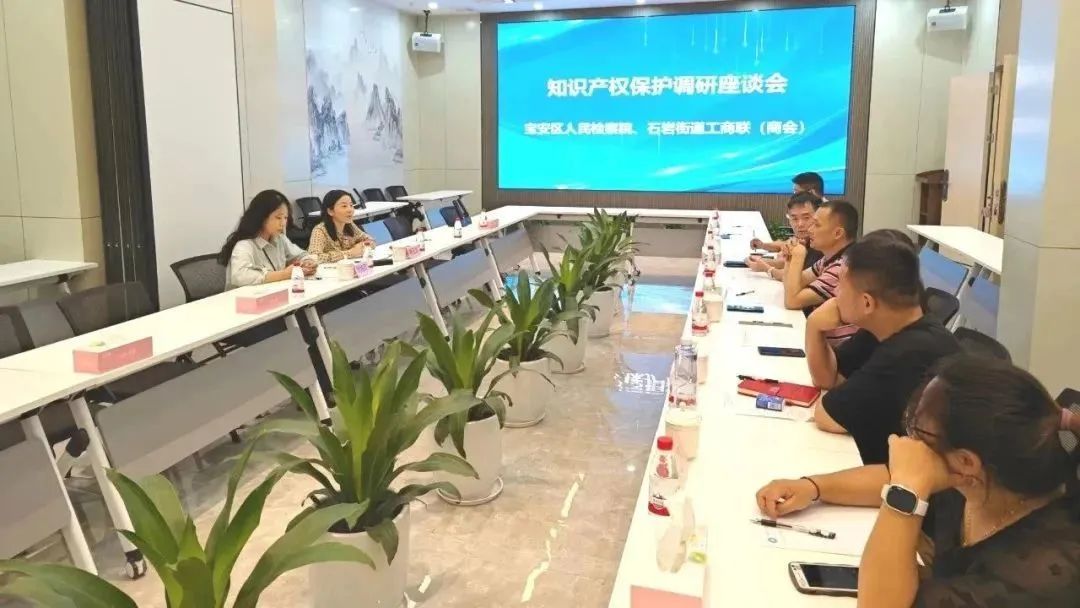 为进一步提高广大企业合规诚信经营和知识产权保护意识,近日,宝安区人民检察院走进石岩街道工商联(商会)共同开展知识产权保护调研座谈会,与商会会员企业面对面沟通,让企业能够更加深入地了解知识产权保护的重要性和相关政策,共同探讨知识产权保护的最佳实践和策略。