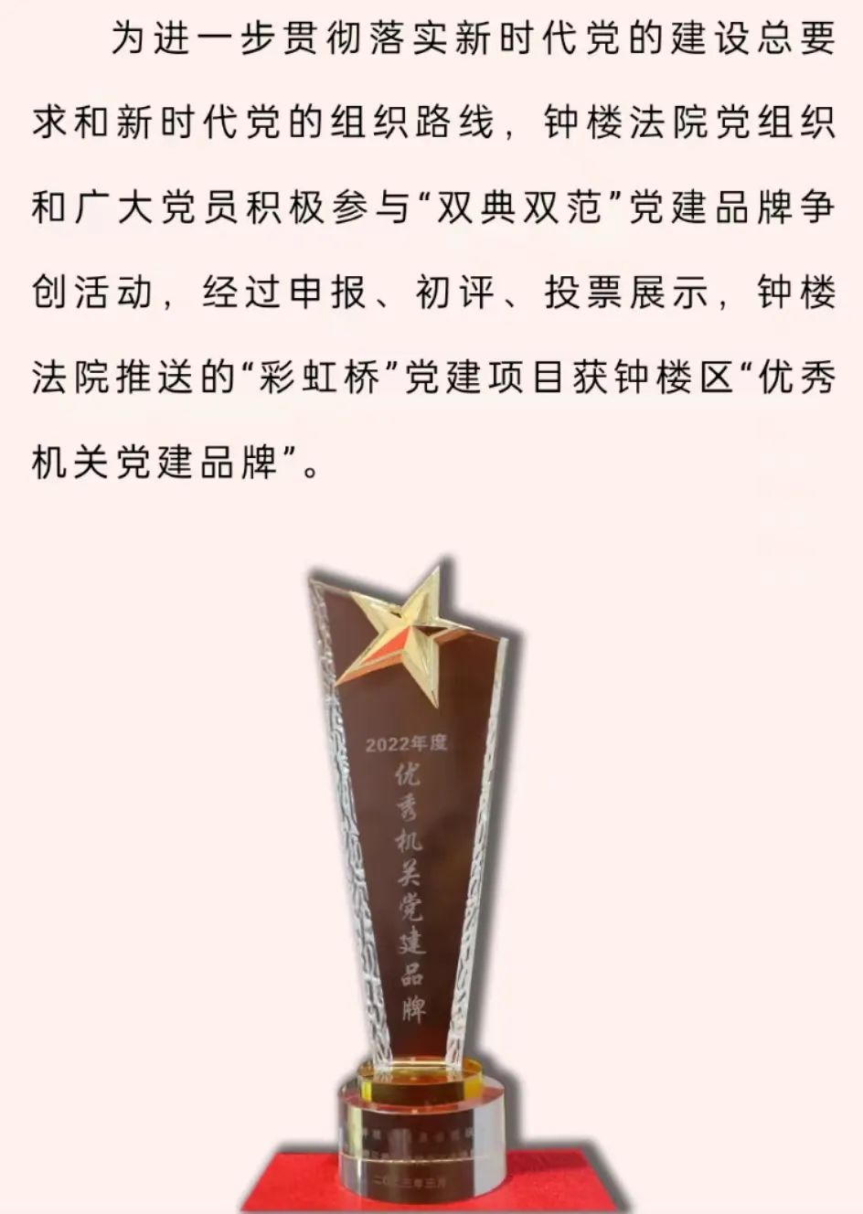 近年来,钟楼法院充分发挥司法能动性,围绕市场主体多元司法需求,创新商会商事纠纷调解模式,全力优化营商环境。2022年获评全省商会商事调解联系协作机制示范单位,2023年1-9月商事案件诉前调解成功率为90.18%,位居全市基层法院前列。