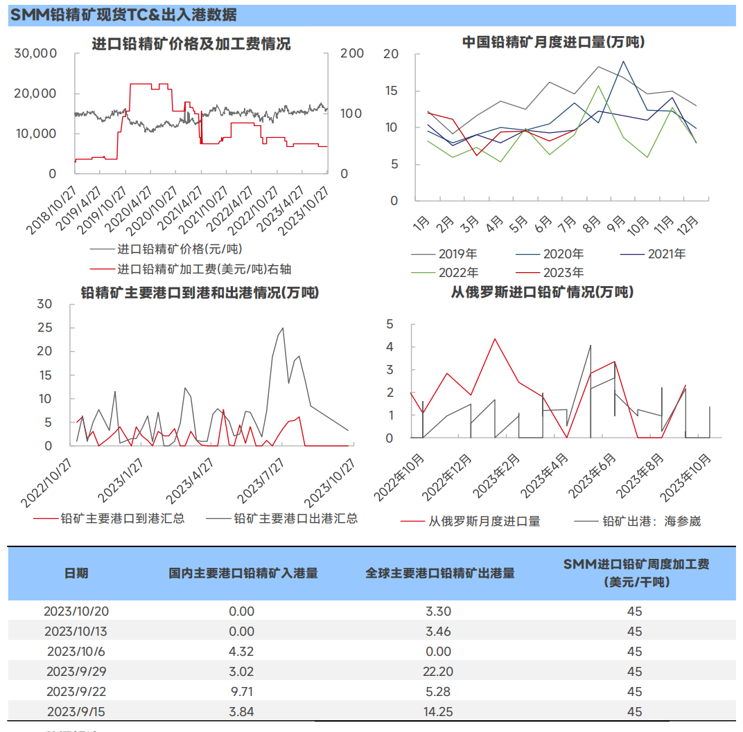 表示原料备库压力增大,但仍对四季度完成精炼铅生产计划保持乐观预期。临近10月底,北方地区部分矿山和贸易商仍有下调锌加工费的同时下调铅精矿加工费的意向。