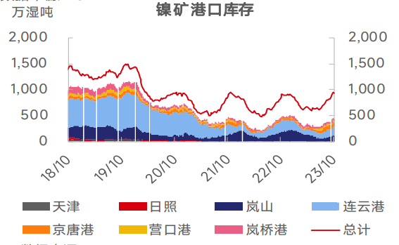 万湿吨至926.5万湿吨。总折合金属量7.274万金吨。其中全国七大港口库存435万湿吨,较10月20日减少17.7万湿吨。目前已临近雨季,发货高峰期已结束,镍矿进入去库周期。