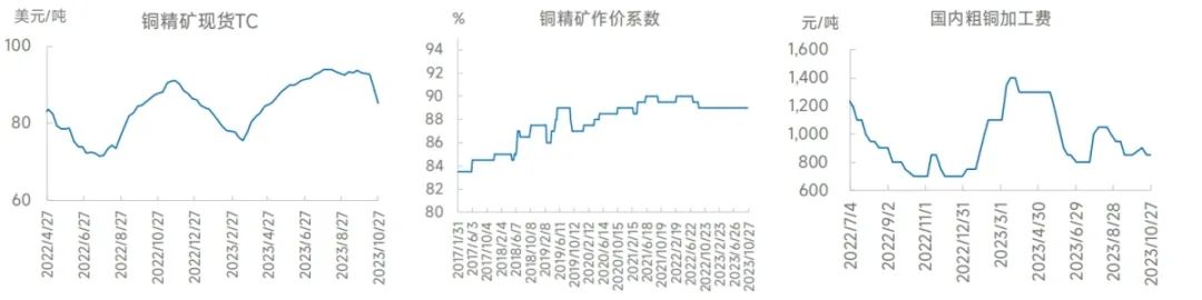美元/吨,较上一期88.76美元/吨减少3.47美元/吨。由于近期存在较多炼厂出于各种原因存在补充现货需求,直接打压铜精矿现货加工费至80美元中位水平,20%品位内贸矿计价系数为88.5%-89.5%。