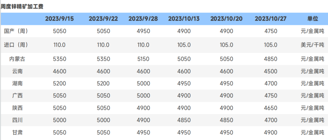 本,据此国内冶炼厂积极抢购国产矿,叠加冬储备货,冶炼厂原料库存压力下,各地加工费下调100~200元/金属吨不等,预计后续仍有下降空间。