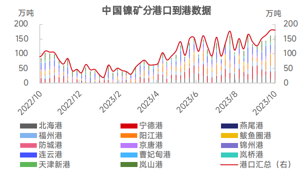 10月20日,当期国内港口镍矿到货量共179.88万湿
