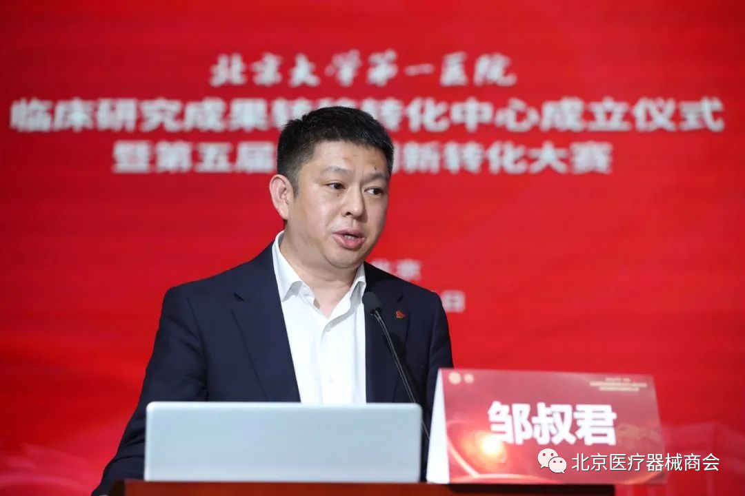 国家技术转移东部中心执行总裁邹叔君作为签约单位代表发言。他表示,希望与北大医院的常态化合作能够在全国医疗体系中起到示范和引领作用,让兼具社会价值与经济价值的成果更快地服务于临床。作为北大医院临床研究成果转移转化中心的首批合作单位,将积极发挥平台优势,以北大医院成果转移转化中心的生态体系建设为切入点,引入全国更多优质的专业机构和服务机构,为北大医院成果转化工作提供更加专业垂直的服务。