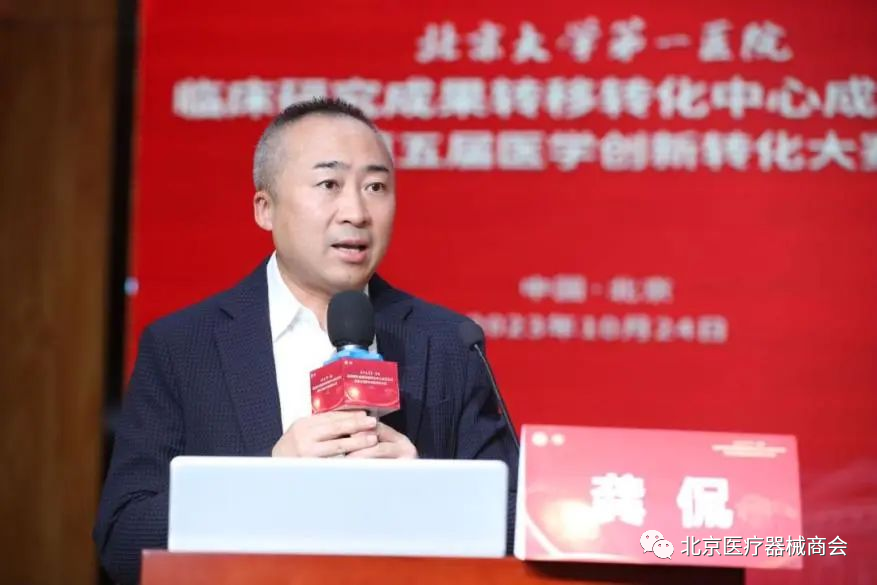 科研处处长龚侃为大赛致辞。北大医院近年来在院内举办了丰富多彩的创新活动,取得了显著成效,后续将进一步落实高水平医院试点政策,推进赋权试理政策,承诺发明技术股等改革措施,建成一站式的成果转化平台,提升相关人员创新转化意愿。创新大赛作为北大医院创新成果重要推荐窗口,评审专家能力与创新项目进一步升级,希望各位评审专家为参赛项目提供建设性意见,以支持项目在后续转化中实现落地。
