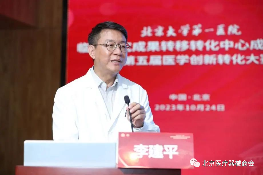 李建平副院长在大会现场做了北大医院科技成果转化工作成果汇报。他表示,北大医院将在未来加强转化体系建设,打造一个有影响力的国家级转化平台、有凝聚力的人才培养平台、有执行力的全链条汇聚平台以及有协同力的市场前服务平台。以北大医院成果转移转化中心成立为契机,推动医、政、企、资等协同合作,加速形成创新链、产业链及资本链深度融合的科技成果转移转化体系,力争成为国家级转化医学基地,助力生物医药产业高质量发展。