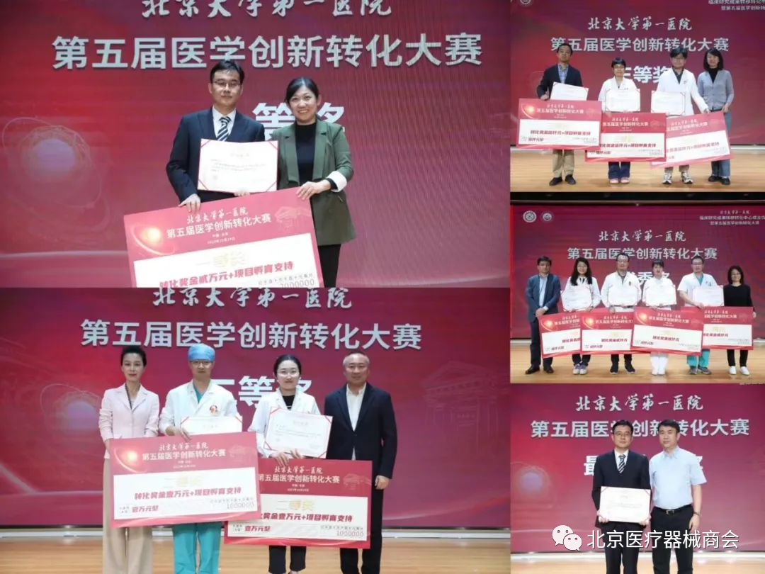 经过一下午的激烈角逐,评审专家们从科技创新、成果转化、临床实践等维度对项目进行综合评定,本次大赛项目获奖结果现场出炉,最终根据各项目的评分,骨科孙浩林获得了一等奖,同时大赛评出二等奖、三等奖、优秀奖和最佳人气奖若干名,由嘉宾和医院领导为各获奖项目团队颁发荣誉证书。每个获奖项目将获得由医院提供的创新成果转化基金,以推动项目的后续转化落地应用。作为医院内设的实体化创新转化平台,北大医院临床研究成果转移转化中心将在后续的工作中发挥其平台与促进作用,为医院科技成果转化工作保驾护航,汇集多方资源赋能项目转化,助推科技创新成果转化落地,实现医药卫生科技创新高质量发展。