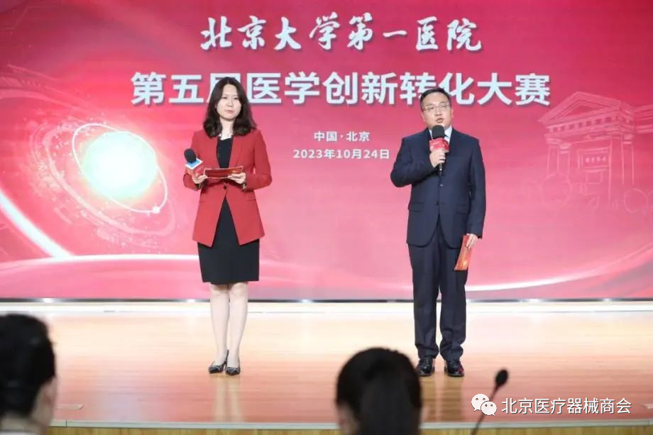 为深入贯彻国家创新驱动发展战略、高质量发展要求,进一步深化医院创新成果转化工作,10月24日,北大医院正式揭牌成立临床研究成果转移转化中心(以下简称“成果转移转化中心”),同时成功举办第五届医学创新转化大赛,由北京大学第一医院与国家卫生健康委相关领导参加。商会协同会员单位奥森多医疗器械贸易(中国)有限公司、北京华大医学检验所有限公司、北京森吉汇元科技有限公司、北京有泽医疗科技有限公司、江苏鹏远生物科技股份有限公司、普迈德(北京)科技有限公司一同参与。商会会长魏彬受邀作为本次大赛的点评嘉宾之一,与医学、工程、投资和产业等多个领域内的评审专家参与最终嘉宾点评。依据评审专家的专业评分,本次大赛项目获奖结果现场出炉,由嘉宾和医院领导为各获奖项目团队颁发荣誉证书。每个获奖项目将获得由医院提供的创新成果转化基金,以推动项目的后续转化落地应用。