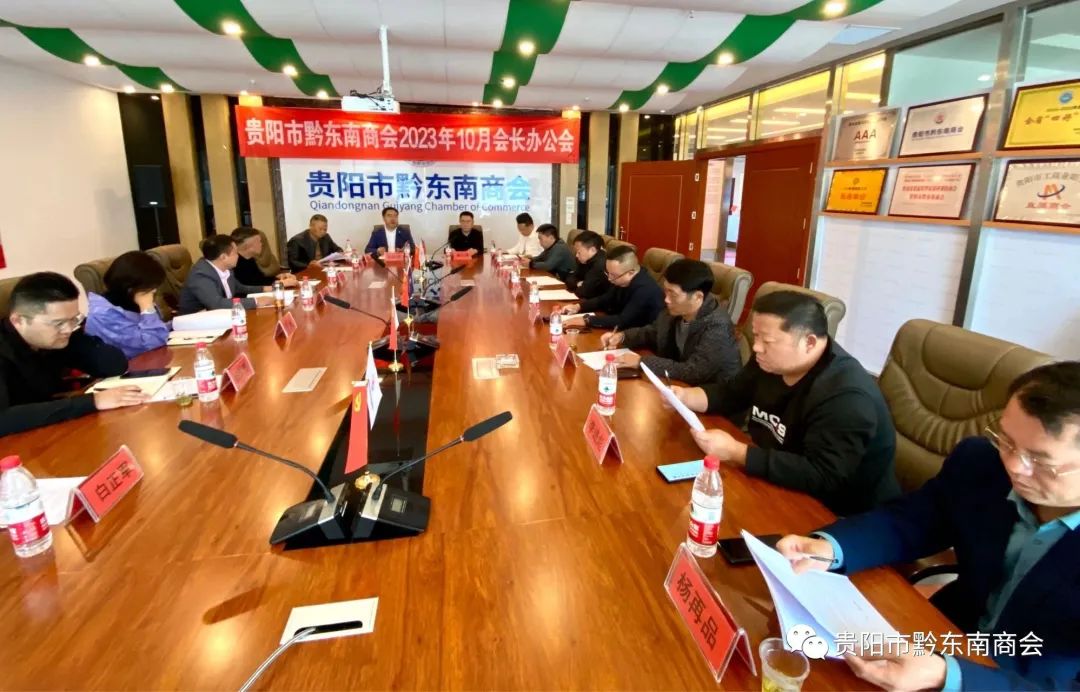 10月25日,贵阳市黔东南商会十月会长办公会召开。总顾问杨光耀,会长张再鸿、执行会长龙运卓,监事长陈英林,党支部书记、常务副会长杨胜东,常务副会长谢朝亮、赖奕蓉、张其斌、梅昌鸿、罗安富,副会长杨慎勇、杨再品、潘禹燃、白正军、李进彪、王艳,秘书长向华等20人出席。会议由常务副会长罗安富主持。
