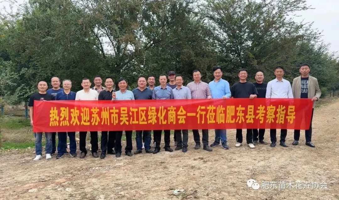 10月25日,苏州市吴江区绿化商会一行16人在会长颜玉勤、支部书记朱勇高的带领下来肥东县开展考察活动,肥东县苗木花卉协会会长王恒华、秘书长韩成勇等协会成员陪同参加考察活动!