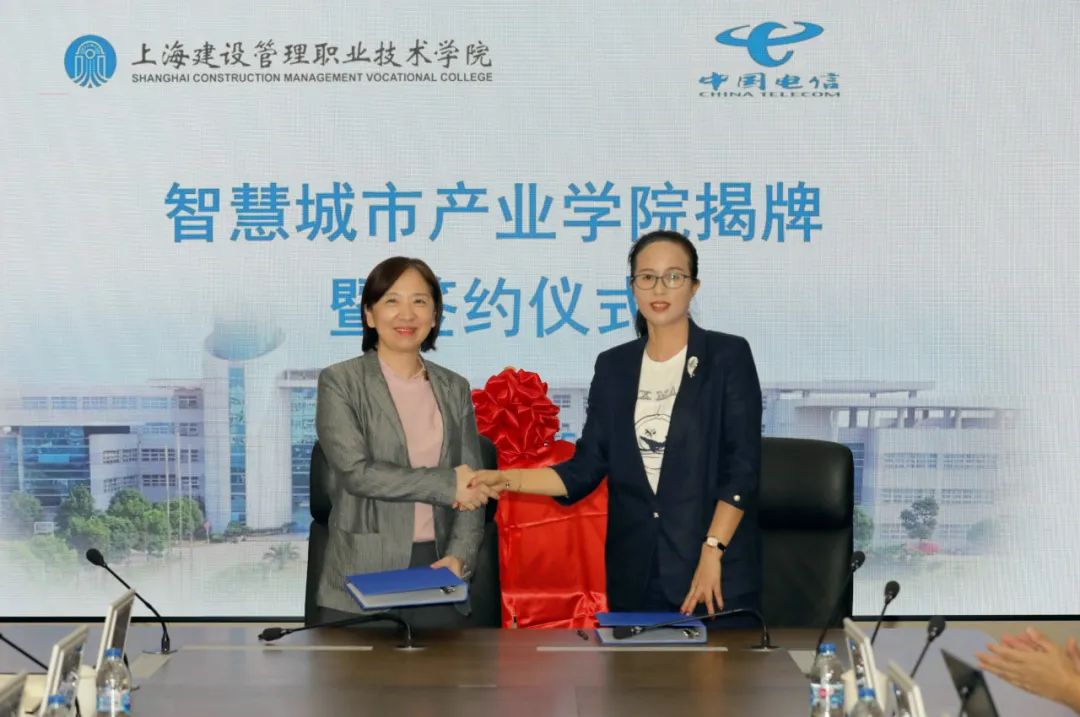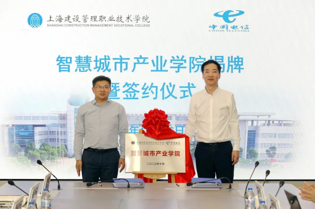 10月25日下午,智慧城市产业学院签约暨揭牌仪式在学院青浦总校区举行。作为上海建设管理职业技术学院与中国电信股份有限公司上海青浦电信局的校企合作产业学院,智慧城市产业学院致力于服务学校住建行业一流学院创建目标,助力学校专业建设与发展,培养行业紧缺人才,推动本市国际数字之都建设和5G物联网应用。