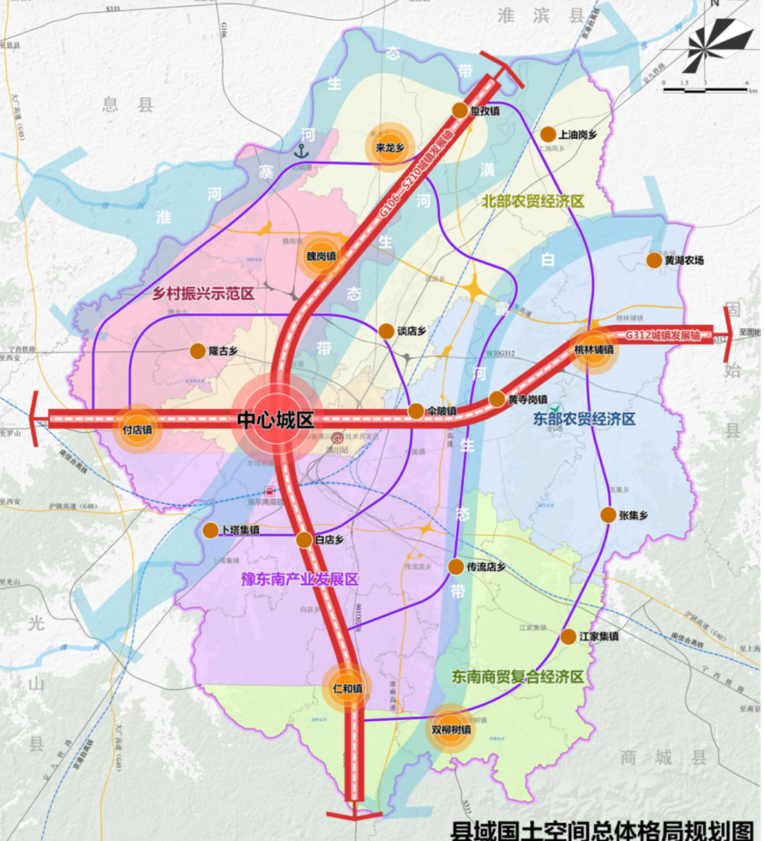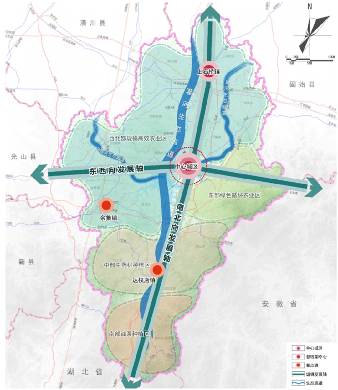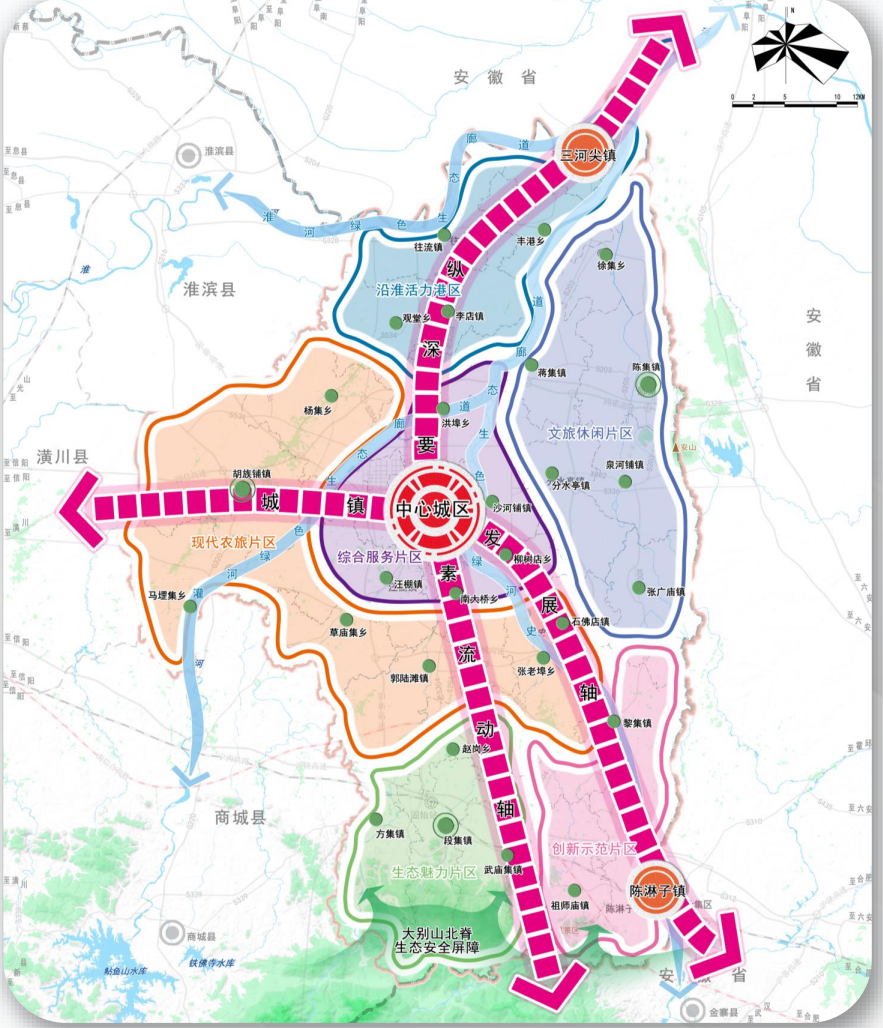 潢川县:一心、两轴、三带、五区、六核、多环
