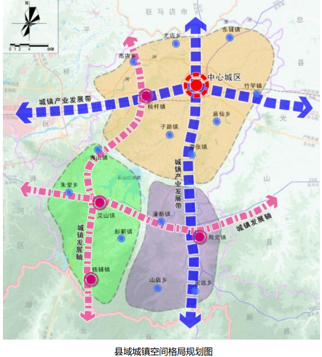 罗山县:一核四心,多点、两带两轴、三区