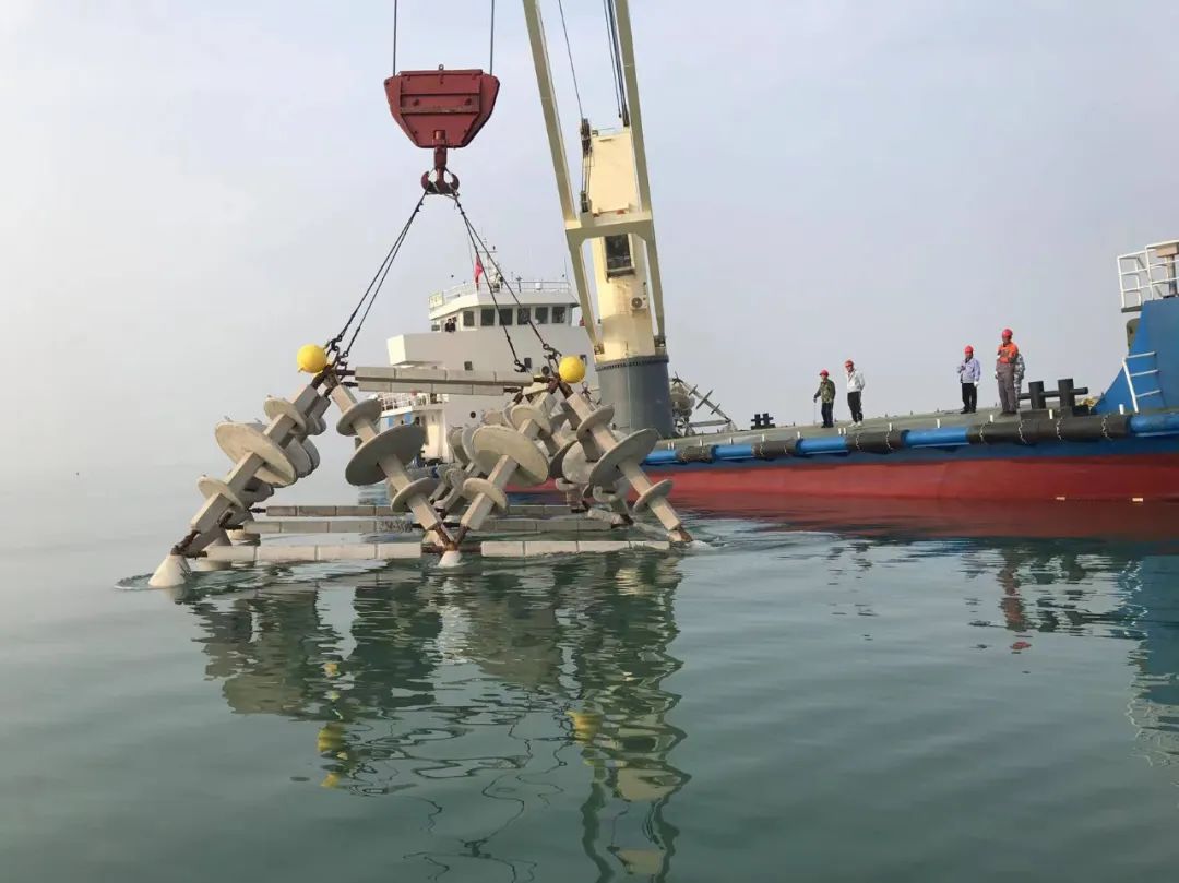 目前示范区已投放人工鱼礁规模3.3万空方。利用涡流效应、集鱼效应以及通过流场效应、饵料效应和避敌效应,吸引海洋中的自然生物在投礁区集聚,海域生态环境得到明显改善,海洋生物种类与生物量显著增加,尤其是海参、鱼类、贝类等经济物种的种群得以恢复。