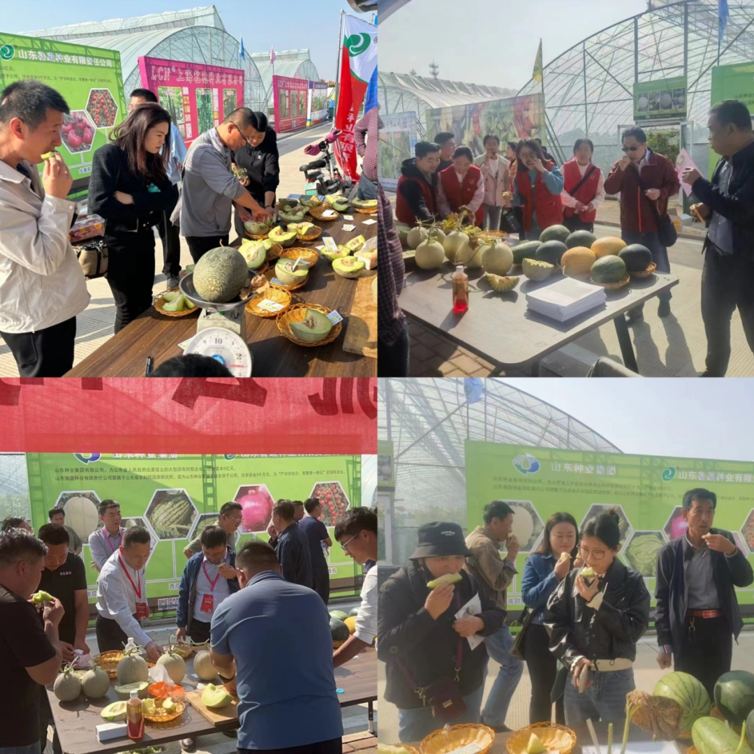本届展会以“种兴粮稳,农强国安”为主题,系统展现国内外种业领域新品种、新技术、新装备、新模式、新成果,全面助力山东省种业振兴行动和济南市现代种业创新发展。鲁蔬种业以瓜会友,共展出厚皮甜瓜品种280个,薄皮甜瓜品种140个,其中14号、15号、59号、136号、237号等重点推介品种,引来众多客户的围观考察,现场咨询不断,展区呈现一派人潮涌动、热闹非凡的火爆景象。种子经销商、种瓜大户进行实地观摩,看品种、观品质、尝口感、鉴特性,驻足洽谈,拍照合影更是络绎不绝。鲁蔬种业甜瓜品种凭借出色的性状表现,赢得了众多商客的一致青睐。