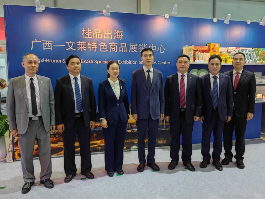 随后,肖大使与广西壮族自治区政府办公厅副主任刘国晔带队的广西代表团一行共同巡馆,参观广西-文莱特色商品展销中心,在广西北部湾摩拉港公司展区观看企业宣传视频,还与中国银行、恒逸、葫芦岛钢铁、中国外运等参展中资企业进行交谈,表示博览会为东增区与其他地区企业搭建了交流平台,希望通过此次展会达成更多合作成果,为推动中国-东盟东增区经贸关系的进一步发展作出贡献。