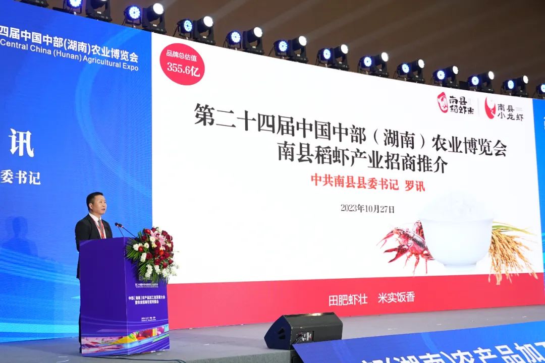 10月27日,第二十四届中国中部(湖南)农业博览会在长沙盛大开幕。县委书记罗讯出席开幕式并作南县稻虾产业招商推介。