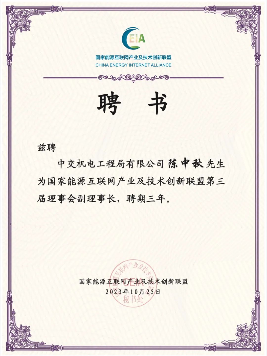 10月25日,在国家能源互联网产业及技术创新联盟第三届第一次理事会上,机电局正式成为国家能源互联网产业及技术创新联盟第三届常务理事单位,机电局党委书记、董事长陈中秋当选联盟副理事长。